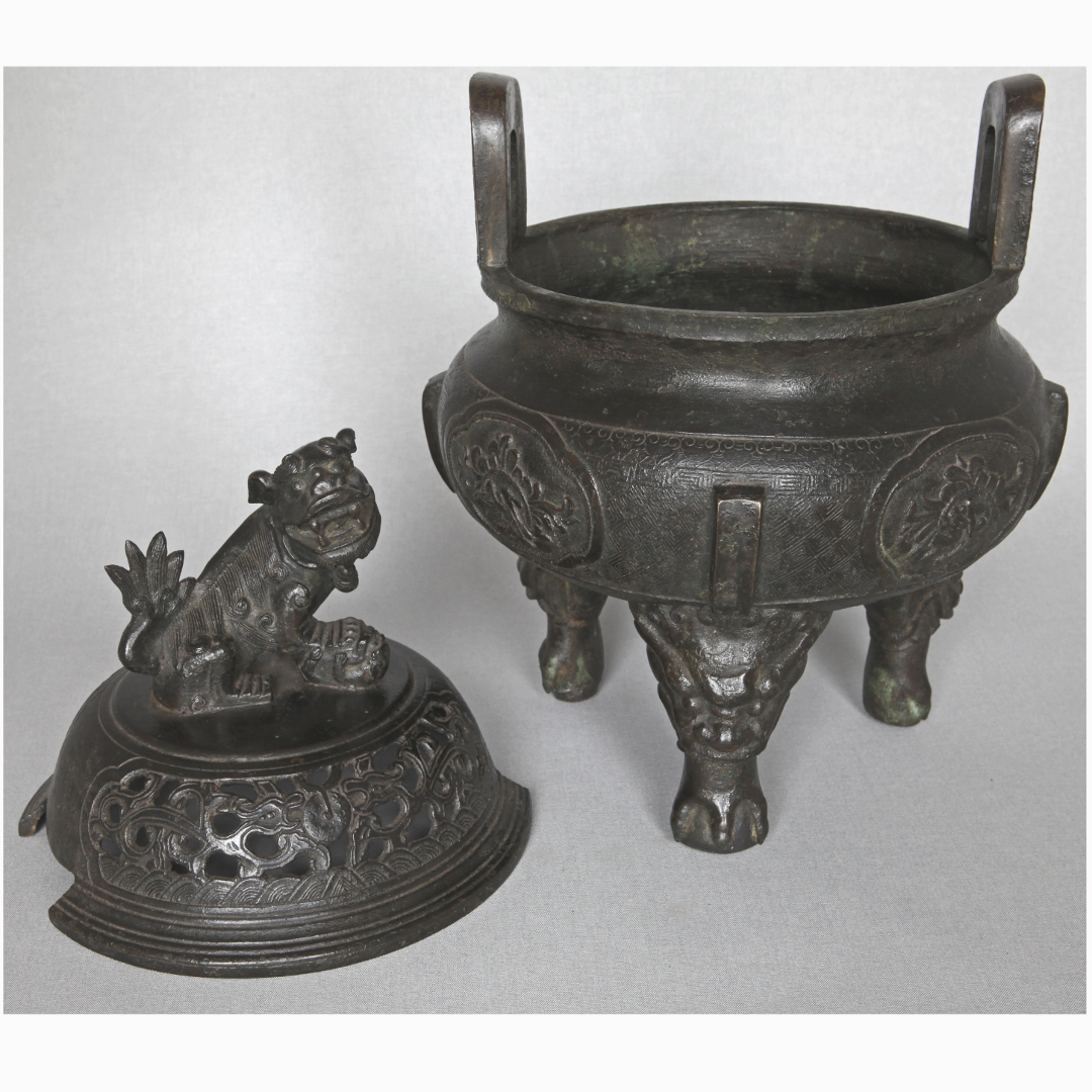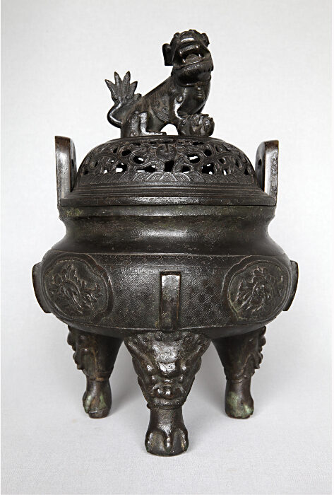TRIPOD CENSER, THE OPENWORK COVER WITH LION FINIAL